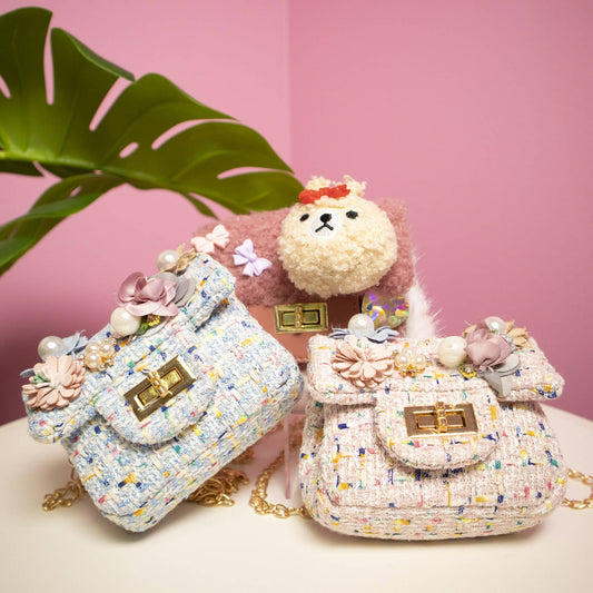 Bewaltz - Mini Tweed Pearly Florals Crossbody - Pink
